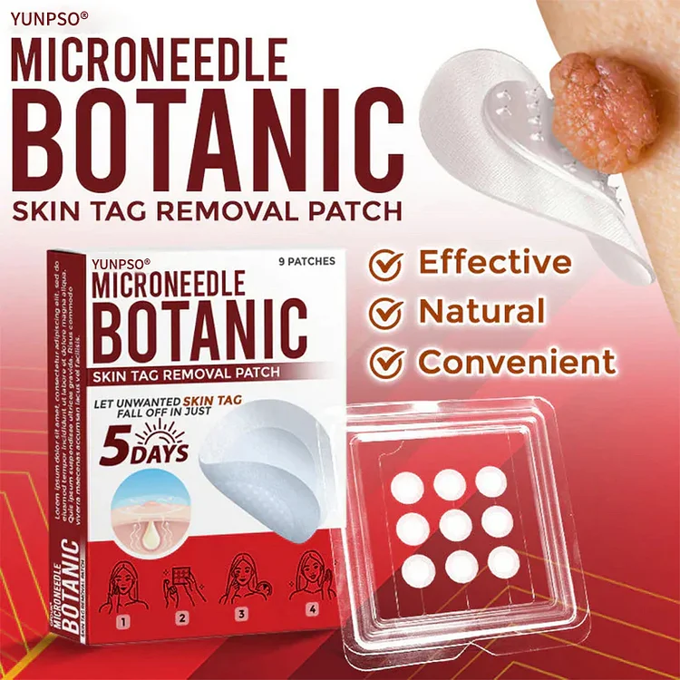 The Yunpso™ MicroNeedle Botanic Skin Tag Removal Patch is an organic micro-needle patch that delivers botanical ingredients deep into the skin to remove skin tags, moles, and warts. “One patch. Five days. Tags fall off — no pain, no scar. Trusted by dermatologists worldwide.”